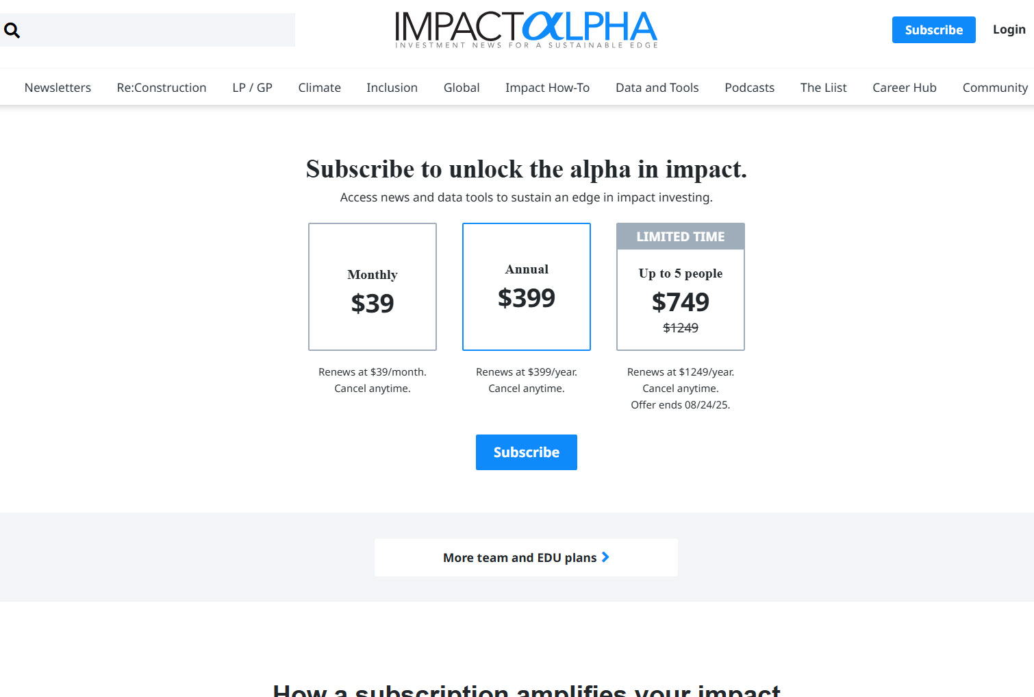 This dynamic, user-centric functionality set ImpactAlpha apart from traditional news platforms and added meaningful value for subscribers.